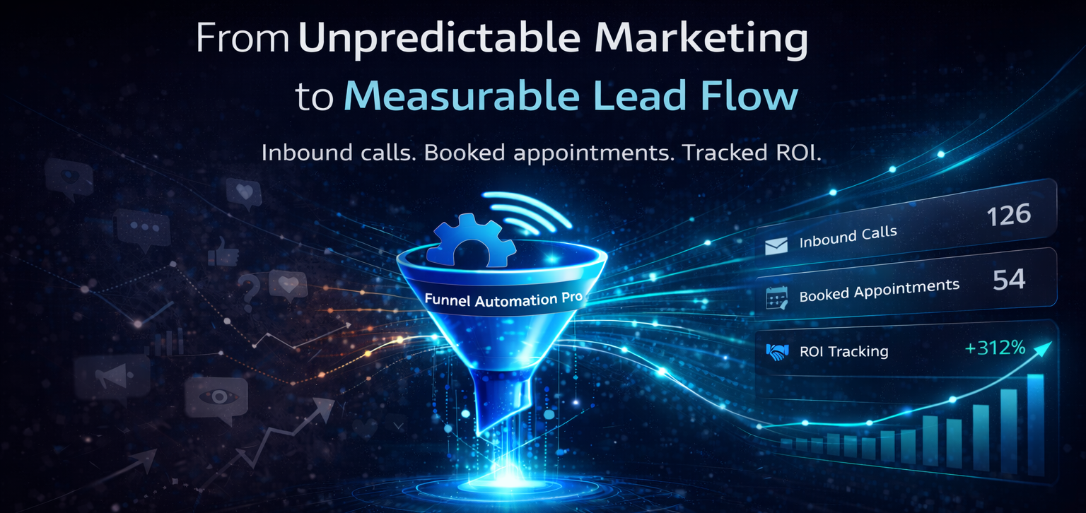 Funnel Automation Pro™ was founded to provide service-based businesses with accountable lead generation solutions. Frustrated by the industry focus on impressions and clicks, we developed structured systems that guarantee real inbound leads and booked jobs tied to ROI. We focus exclusively on businesses needing reliable lead flow for sustained growth and operational stability.